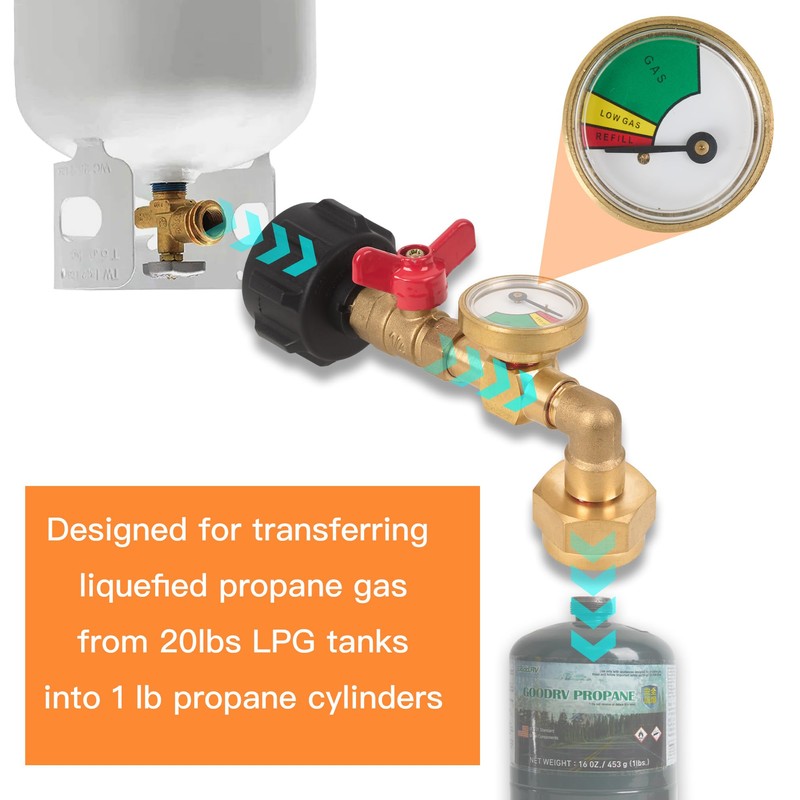 Brass Propane Refill Adapter for 1 lb Tanks With Guage Convert 20 lbs LPG Tank To 1lb Propane cylinder