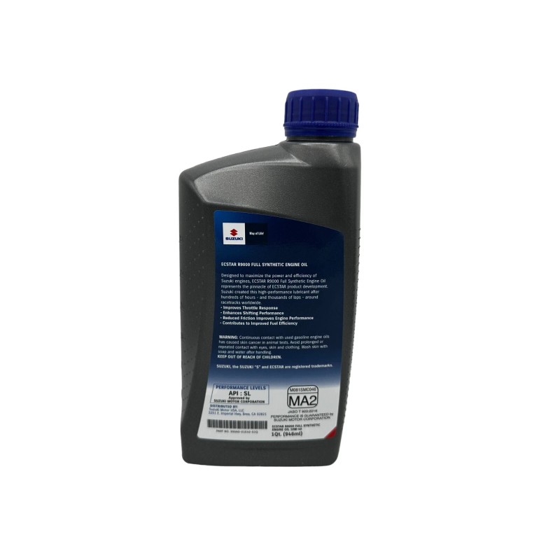 - CYCLEMAX OIL CHANGE KIT INCLUDES: Three Suzuki 990A0-01E40-01Q ECSTAR R9000 10W40 Quarts of Oil, One Suzuki 16510-07J00 Oil Filter, One Suzuki 13780-09F00 Air Filter, One CR6E NGK Spark Plug, One 12mm Drain Plug Crush Washer and a Convenient Disposable Funnel.