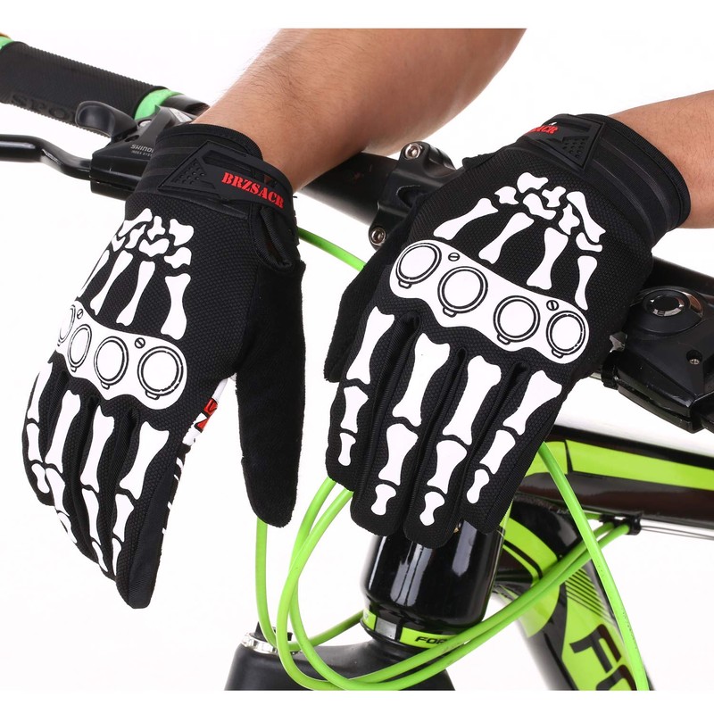 Cycling Gloves Full-Finger Gloves Skeleton Bones Motorcycle Bike Gloves Mountain-Padded Road Bicycle for Men Women Non-Slip and Resistance to Abrasion for Biking Climbing Hiking.(Black,L)