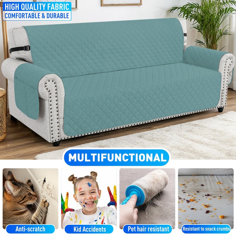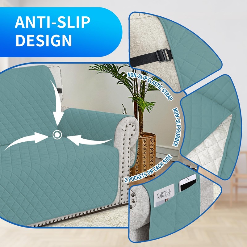 - Triple adjustable slip protection: the sofa throw non-slip has a non-slip base + silicone dots with high adhesive force + an adjustable elastic band. These three elements ensure a firm hold of the sofa cover. The sofa protective blanket stays perfectly in place even with sudden movements, lively children or jumping animals and does not need to be constantly rearranged. This saves you time and makes your life easier