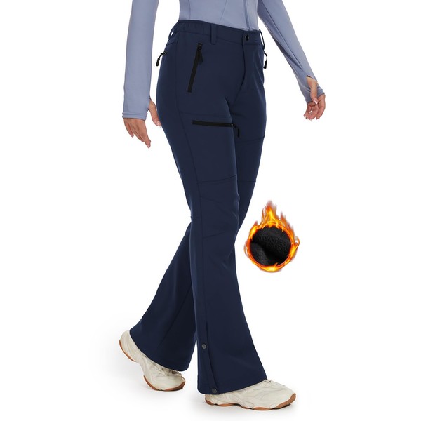 Cycorld Women's Snow Ski Pants Fleece Lined Waterproof Softshell Insulated Flare for Snowboarding Hiking Winter Outdoor(Navy, 12)