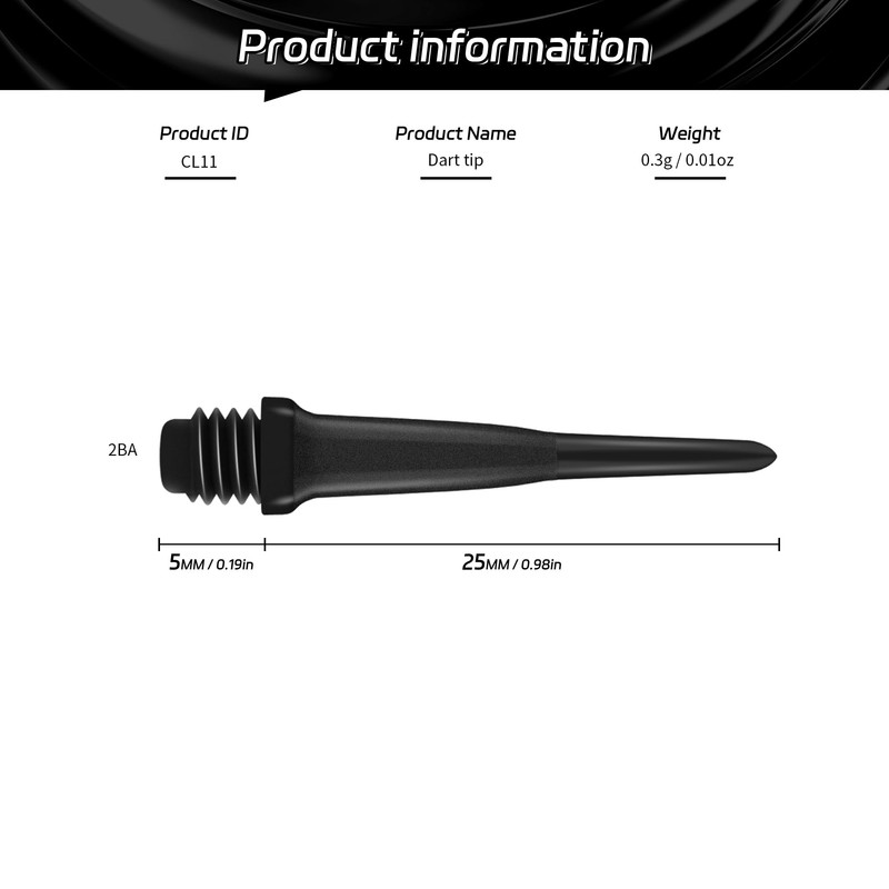 • Dimensions: Measuring 25mm in length and weighing only 0.3g, these dart points are designed for balanced performance, offering precision and consistency in every throw.
