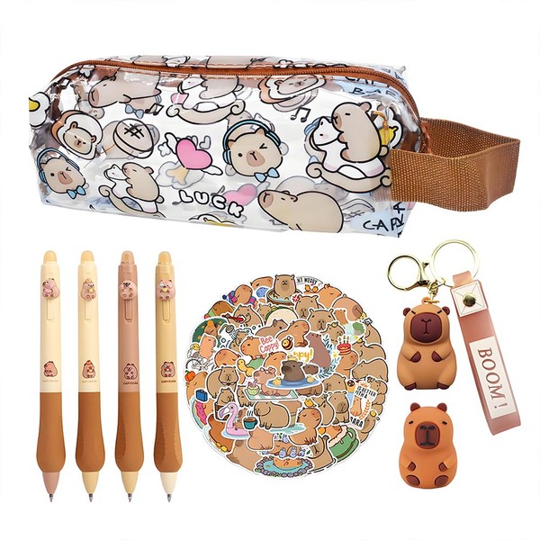 CYGMRFH Large Volume Capybara Stationery Set, Capybara Stuff Pencil Case, Capybara Sticker, Keyring (A2)