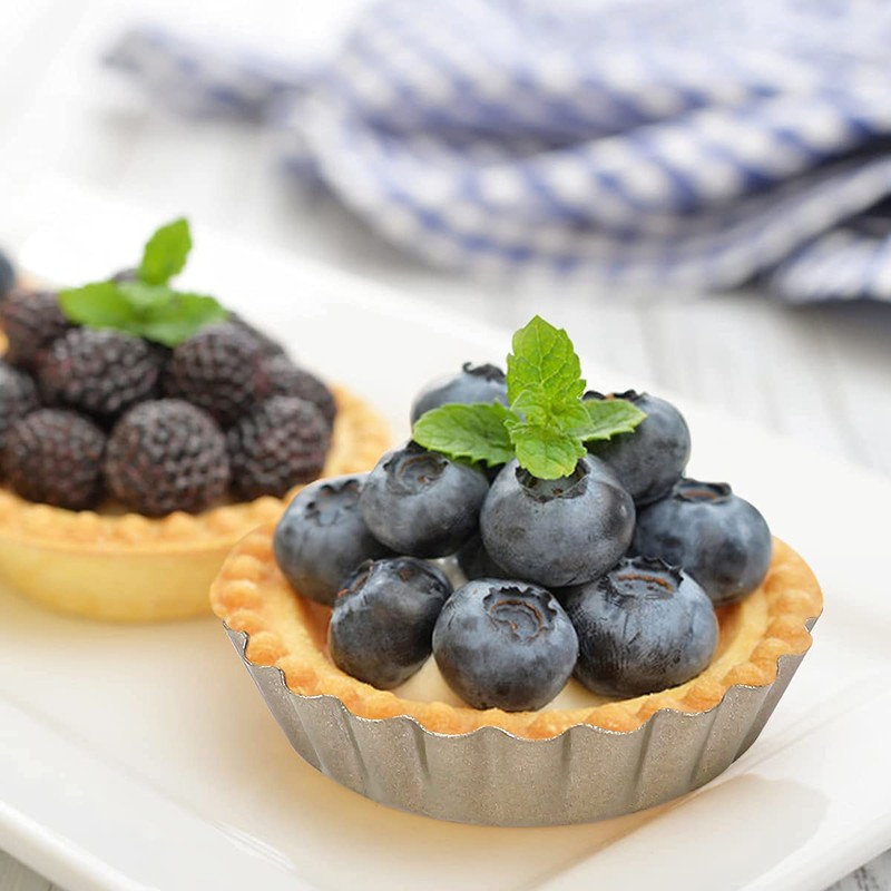 • SAFE & HYGIENIC NON-STICK COATING: The tart pan is made of high quality food grade carbon steel, high hardness, strong thermal conductivity, will not bend or deform. The surface of the 3 inch mini egg tart moulds is treated with a coating process that is stable.