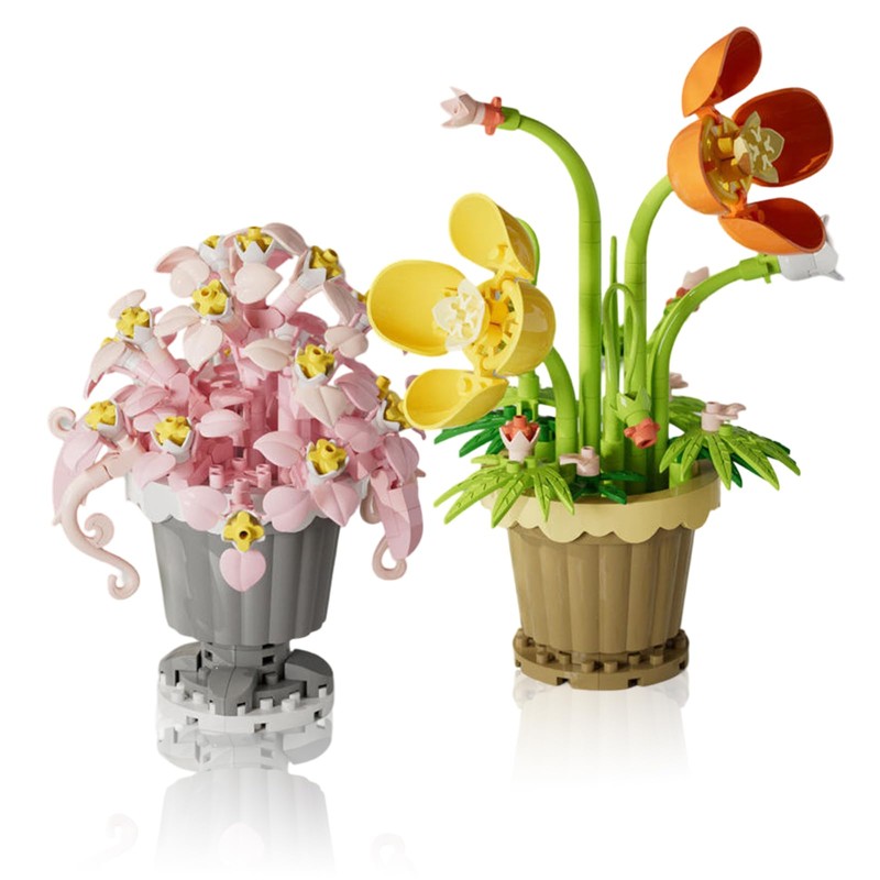 Set of 2 toy set with simulated potted plant building blocks: Lichun flowers + sedge flower.