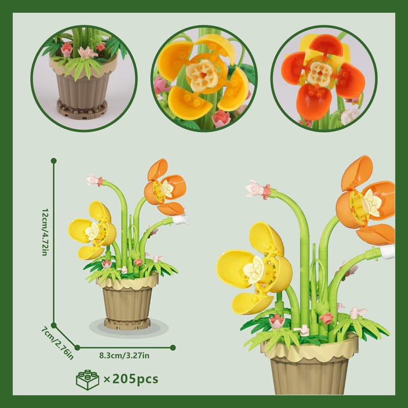 • Size: the finished product of the spider plant pot building blocks is approx. 9 x 7 x 7 cm / 3.54 x 2.75 x 2.75 inches, and the finished product of the building blocks of Lichun flower flowers is approx. 12 x 8 x 7 cm.