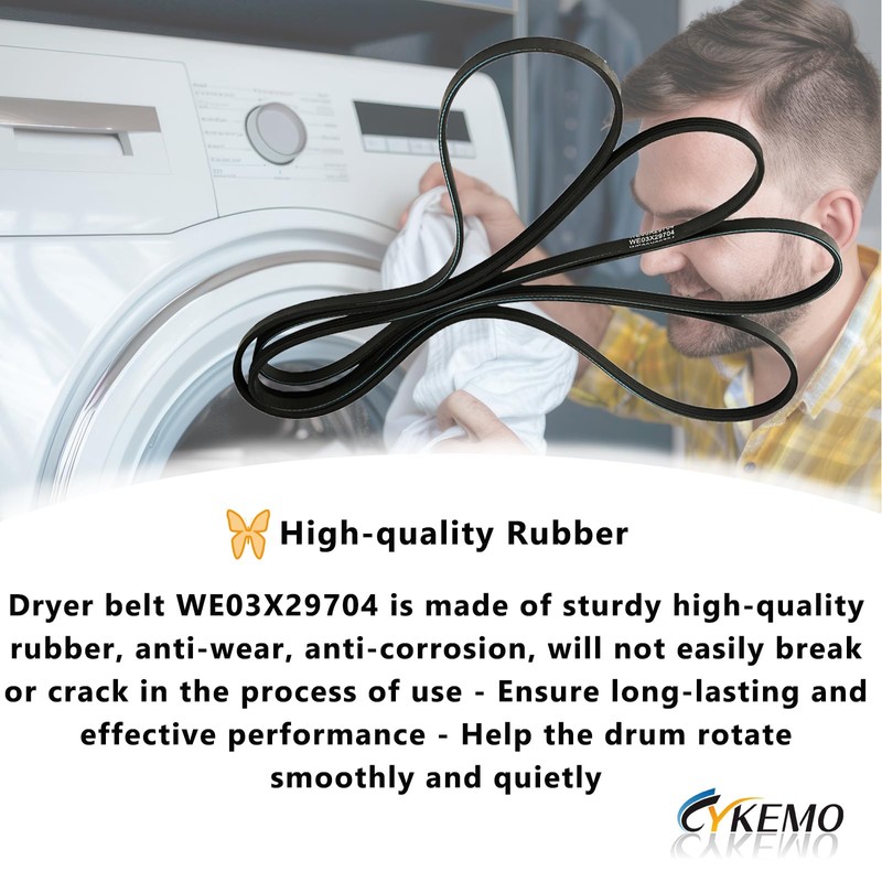 - Premium Quality Material : Dryer belt WE03X29704 is made of high-quality sturdy rubber material, ensuring flexibility, wear-resistance, long-lasting and stable performance. It helps maintain consistent drum rotation, extending the lifespan of your dryer