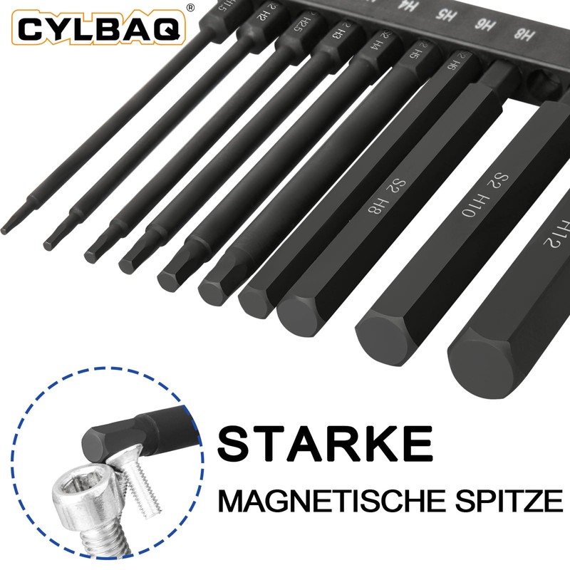 CYLBAQ Bit Set, Long Hex Screwdriver Bits Set, 1.5-12 mm, 1/4 Inch Hex Shank, Allen Key Magnetic S2 Hexagon Screwdriver, Black (100 mm Metric + Tool)