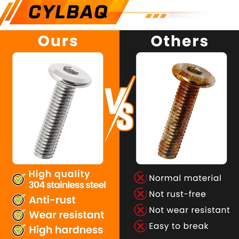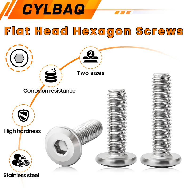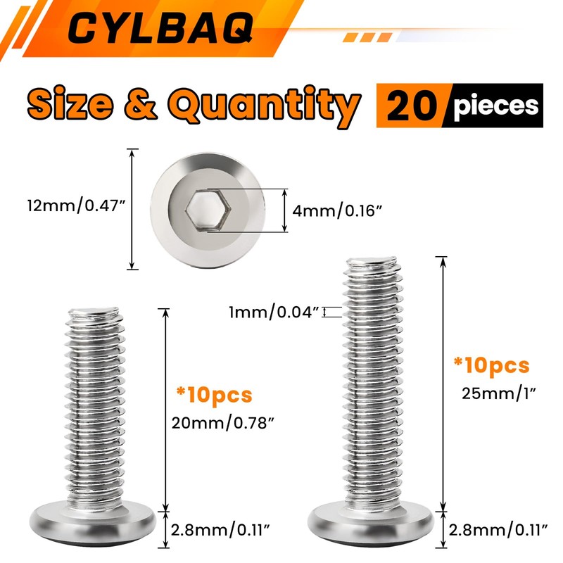 - ➤ [Package Includes]: CYLBAQ 20Pcs Hex flat head screws includes: 10cs M6 x 20mm, 10pcs M6 x 25mm, and with one angled Hex key perfect for tightening in tight spaces.