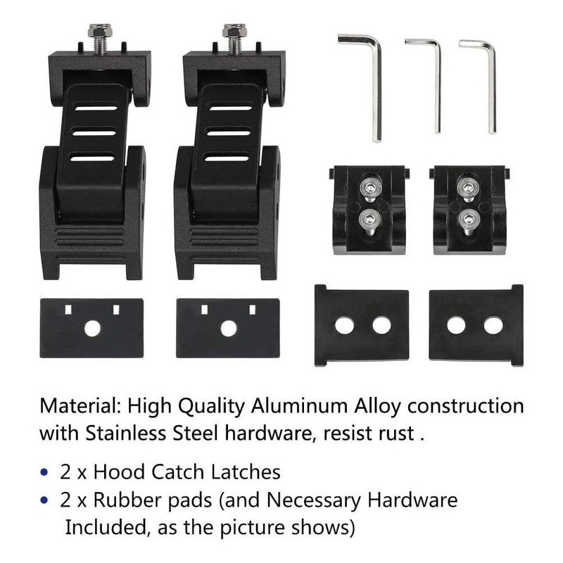 - Package Include: 2 pcs hood latches + 2 pcs rubber pads (and Necessary Hardware Included)