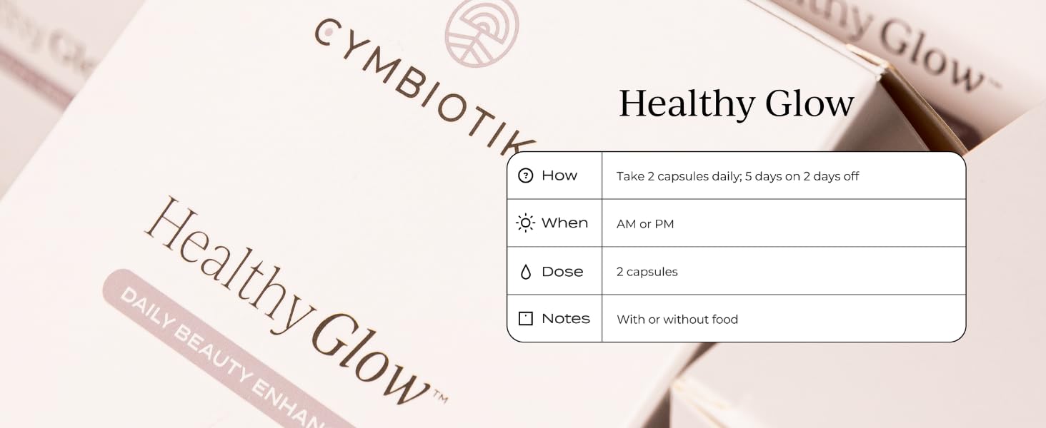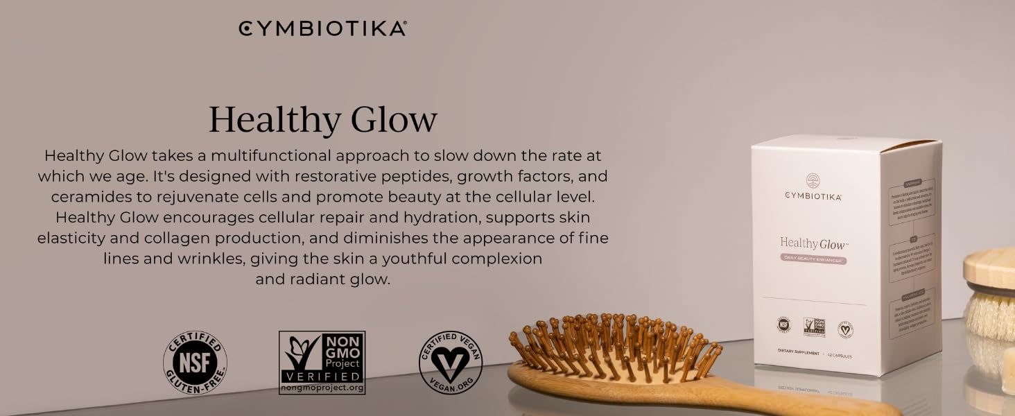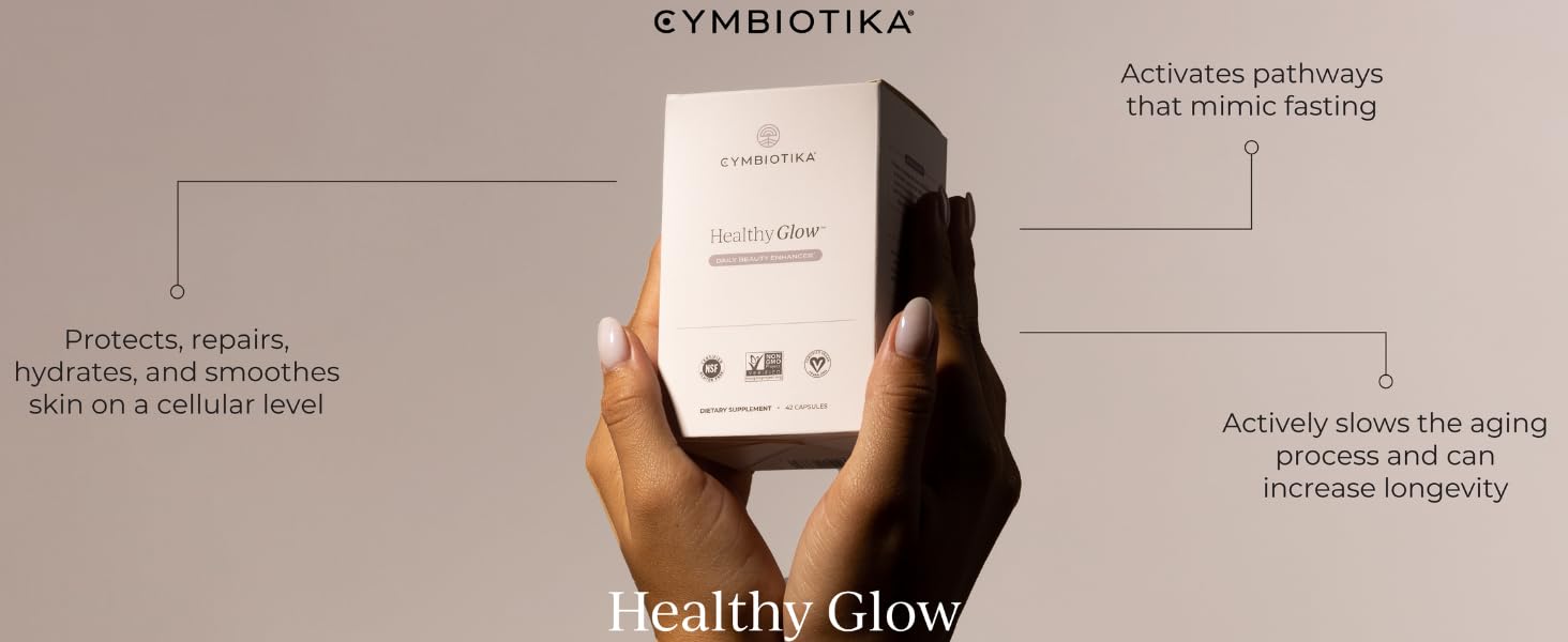 - NATURAL SUPPLEMENT: CYMBIOTIKA strives to create ingredients you can trust. We combine scientific innovation with traditional Eastern medicine to design formulas that synergize with the body. Our Healthy Glow supplements utilize the most advanced absorption technology and are Non-GMO, gluten free, vegan, and made with ZERO chemicals, animal products, alcohols, additives, and preservatives.