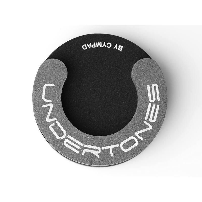 Cympad Undertones — a trio of cellular foam devices designed to improve the sound of bass drums and floor toms while offering an extra layer of protection from unwanted drum and pedal movement. The innovative system features specially-designed discs for floor tom legs and bass drum spurs as well as a pad for acoustic and electronic bass drum and hi-hat pedals. The pads de-couple and isolate the drums from the floor— adding significant sustain and low end to their sound. The combination of spur and pedal pads is especially effective in enhancing the sound of bass drums and rack toms on bass drums equipped with mounted tom holders. In addition, the underside of Undertones features a proprietary non-skid material that helps anchor the drums and hardware on a variety of surfaces and reduces the need for drum rugs.