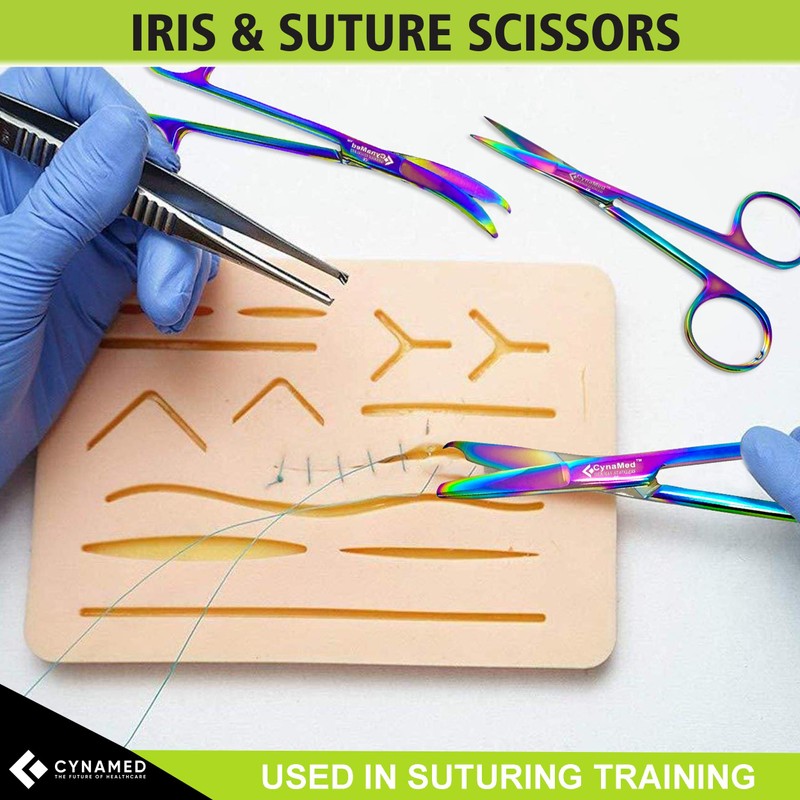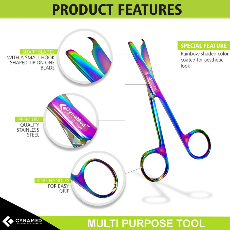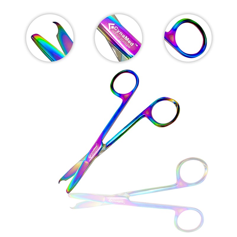 Cynamed Suture Stitch Scissors with Multicolor/Rainbow Titanium Coating - Premium Quality Instrument- Delicate Hook - Perfect for Suture Removal, First Aid, EMS Training and More (4.5 in. - Straight)