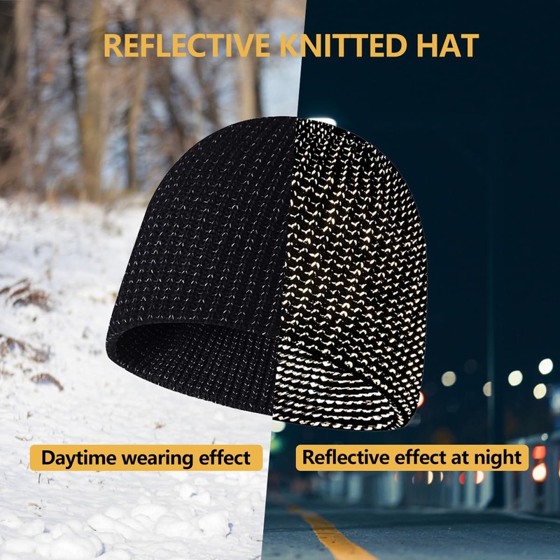 - Designed with plenty of elasticity, this reflective running beanie hat comfortably fits most head sizes, providing a snug yet comfortable fit for everyone.