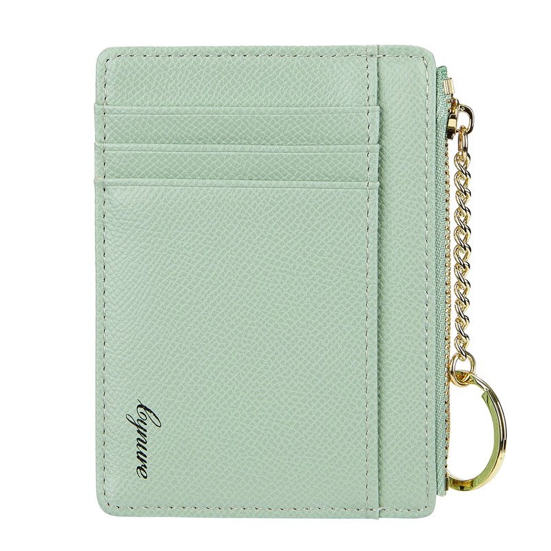 Cynure Women's Card Holder Coin Changes Purse Keyring with ID Window, Green-id, Minimalist