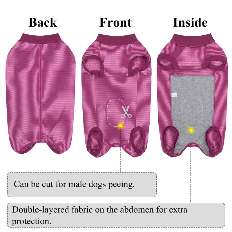 - About Sizes: Available in 7 sizes from XS to 3XL, this dog onesie is suitable for small, medium, and large dogs. Please measure your dog's chest and back length, then refer to our size chart to ensure the perfect fit. For any assistance, feel free to contact us.
