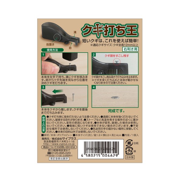 - ■ Easy to hit short nails that cannot be held with your finger. Even beginners to DIY. The short nails are difficult to hold on with your finger, and they are difficult to hit with a hammer with a hung. That's it! Simply clip the short nails into the tip of this product and hammer it with a hammer Made of break-resistant resin that can be used over and over again. Also suitable for detailed work such as handicrafts