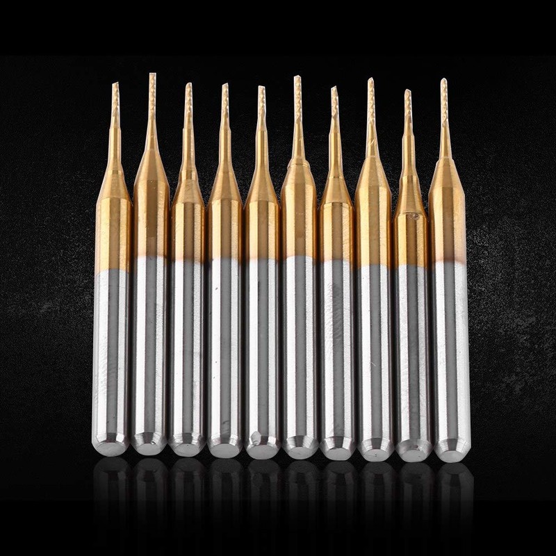 CYSFETENA Pack of 10 3.175 x 0.6 mm End Mills Metal, High Hardness Bending Rigid End Mill, Sharp Carbide Cutter for Engraving Circuit Boards, Induction Plates, Fibres