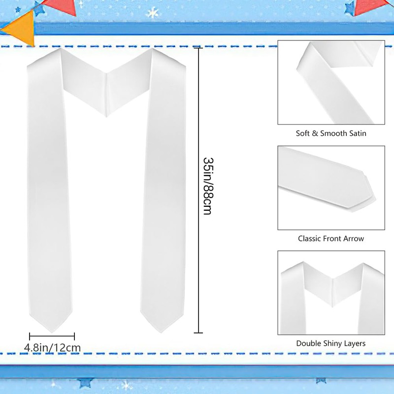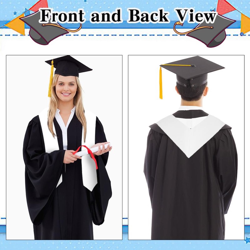 - Unisex Design: The plain graduation stole adopts a V-shaped design, which can be perfectly matched with graduation gowns. The graduation shawl is available in a variety of colors to suit your needs. The white graduation stole also supports DIY to make your own unique one
