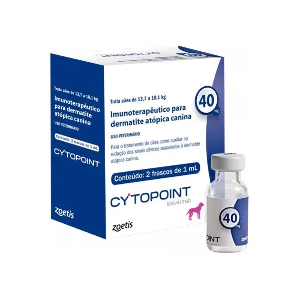 INMUNOTERAPÉUTICO PARA DERMATITIS ATÓPICA CANINA - SOLUCIÓN INYECTABLE. Cytopoint de 10mg es para perros de 2,3 a 4,5kg. Cytopoint® es un líquido estéril, listo para usar, que contiene un anticuerpo monoclonal caninizado (mAb) contra la interleucina-31 (IL-31). Estudios de laboratorio han demostrado que la IL-31 induce prurito en perros. Cytopoint® permanece en la circulación durante varias semanas. Ejerce un efecto terapeútico al enlazar y neutralizar a la IL-31 soluble, inhibiendo así el prurito y reduciendo las lesiones en la piel. Al igual que otros anticuerpos y complejos anticuerpo-antígeno naturales, su eliminación es por las vías normales de degradación de las proteínas.