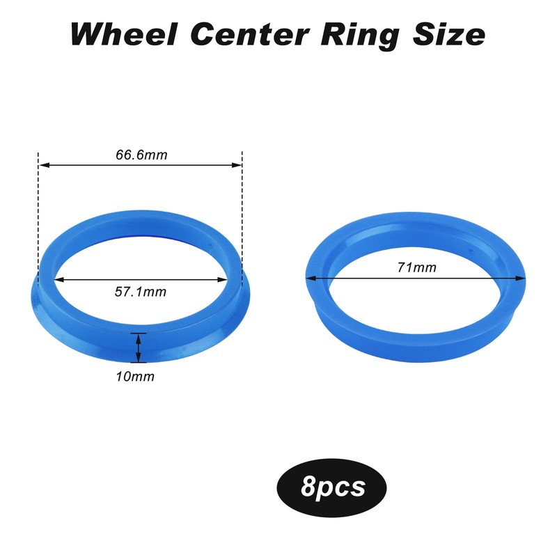 CYUaoao 8 pieces centring rings 66.5 to 57.1 spacer rings for universal 66.6-57.1 plastic centring rings, blue