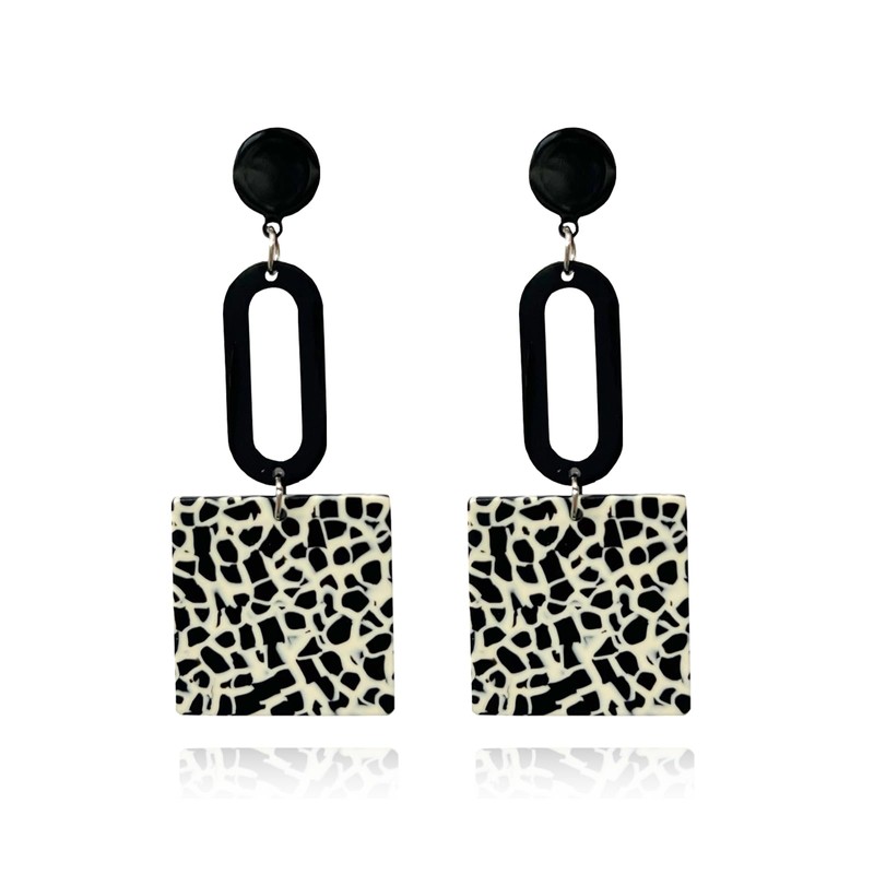 CYV Retro Trendy Acrylic Multicolor Mottled Geometric Statement Dangle Drop Earrings for Women Jewelry (white)