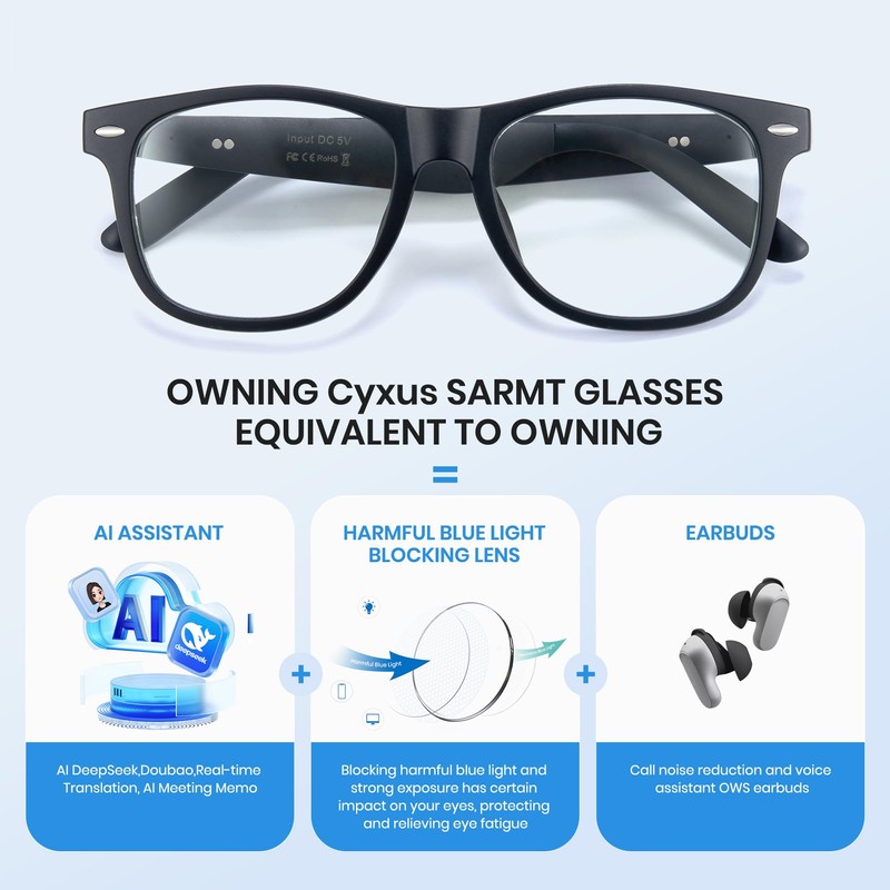 - AI-Powered Real-Time Bilingual Genius: Crush language barriers instantly with Cyxus AI smart glasses! Featuring ChatGPT-enhanced dialogue mode, voice-to-text transcription, and face-to-face translation across 144 languages. Imagine negotiating Tokyo deals or ordering tapas in Barcelona – your words transform seamlessly mid-conversation. Perfect for globetrotters and remote teams!(*To use translation or conversation features, you must operate the app)
