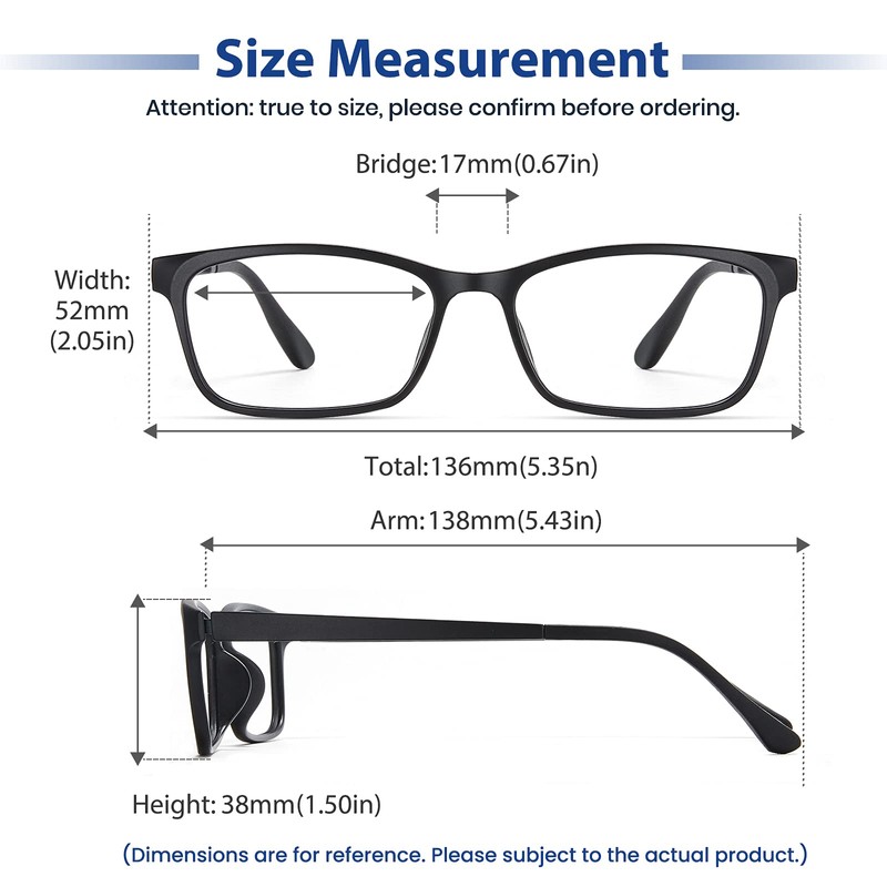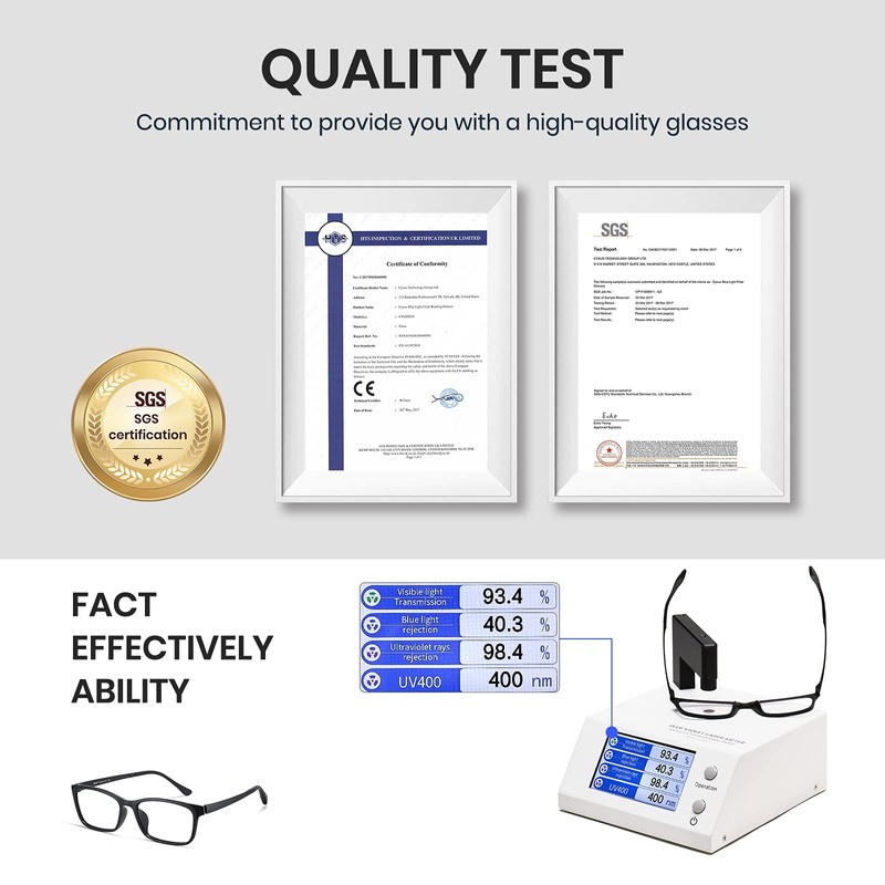 • 【HEV-Absorbed TECHNOLOGY】Cyxus blue light filter glasses lens are crafted from HEV-absorbed technology and radiation protection membrane, Anti-reflective membrane, Nano waterproof membrane. This blue light glasses for women can abosorb the harmful blue light between 380nm and 450nm and release beneficial blue light. Sqaure blue light glasses can prevent light reflection and avoid eye pain.