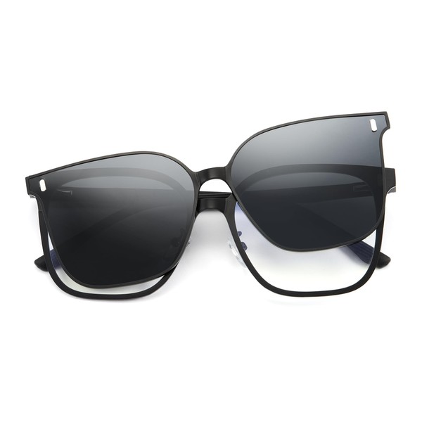 Cyxus Glasses Frame with Magnetic Clip Polarised Sunglasses Men Women Lightweight Frame Sunglasses UV 400 for Driving Fishing Travel P1210, black