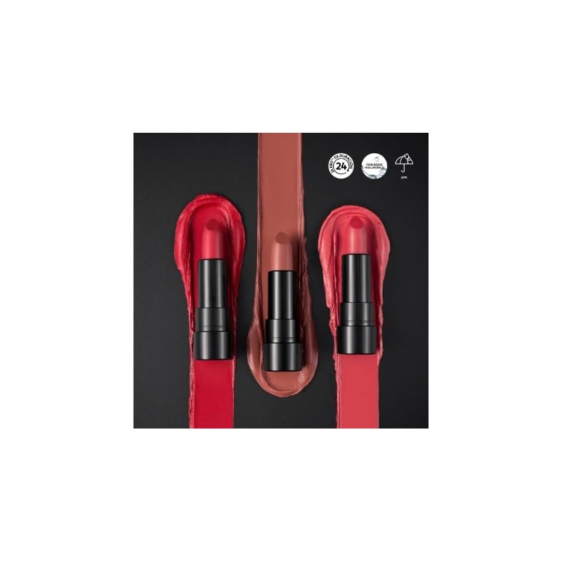 - Reasons to love it: Studio Look Velvet Lips with 24H velvety matte, ultra-comfort on your lips. Non-drying velvet matte texture and finish. 24H long-lasting, waterproof. Intense color with even coverage.