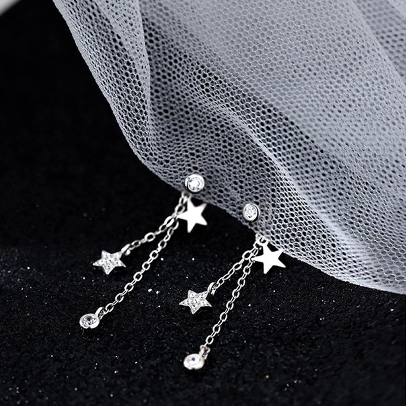 - ♥SIZE & STYLE♥The CZ Bezel Star Tassels Dangle Earrings Height:30mm(1.18in),Silver Plated Earrings Width:5mm(0.19in). Please kindly refer to the product image.
