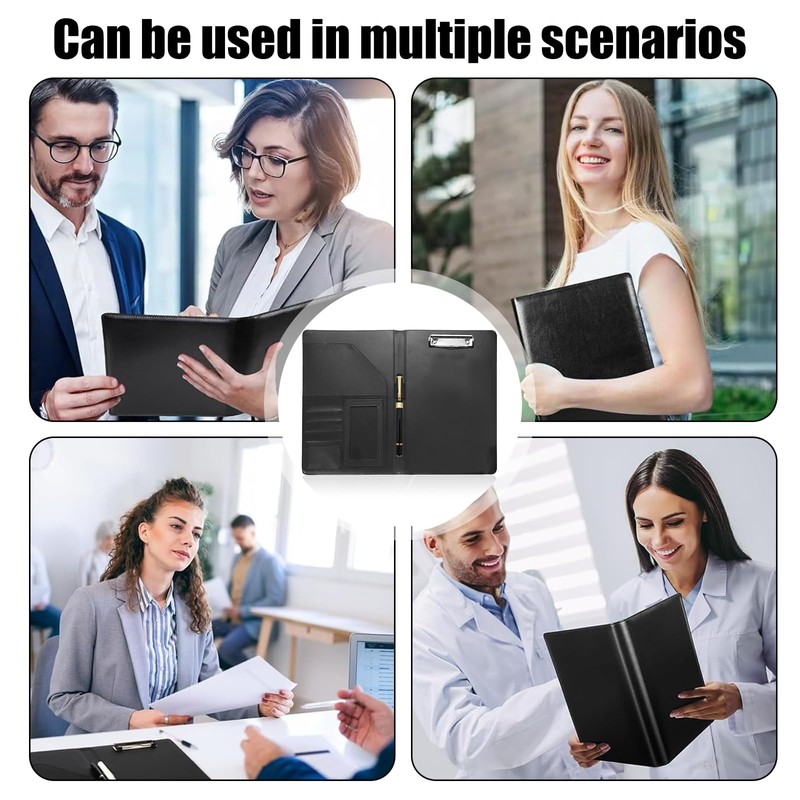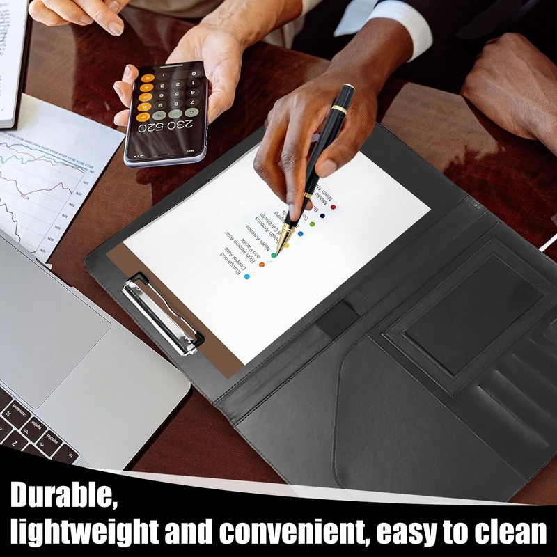 - Premium Material and Minimalistic Elegance: Crafted with premium dual-layer PU leather, this portfolio organizer boasts both quality and minimalistic elegance. Meticulously handmade, it offers durability, lightweight convenience, and easy cleaning. Designed to reflect your business and professional demeanor, this padfolio suits any occasion. A clipboard with storage that's a good choice for any situation.