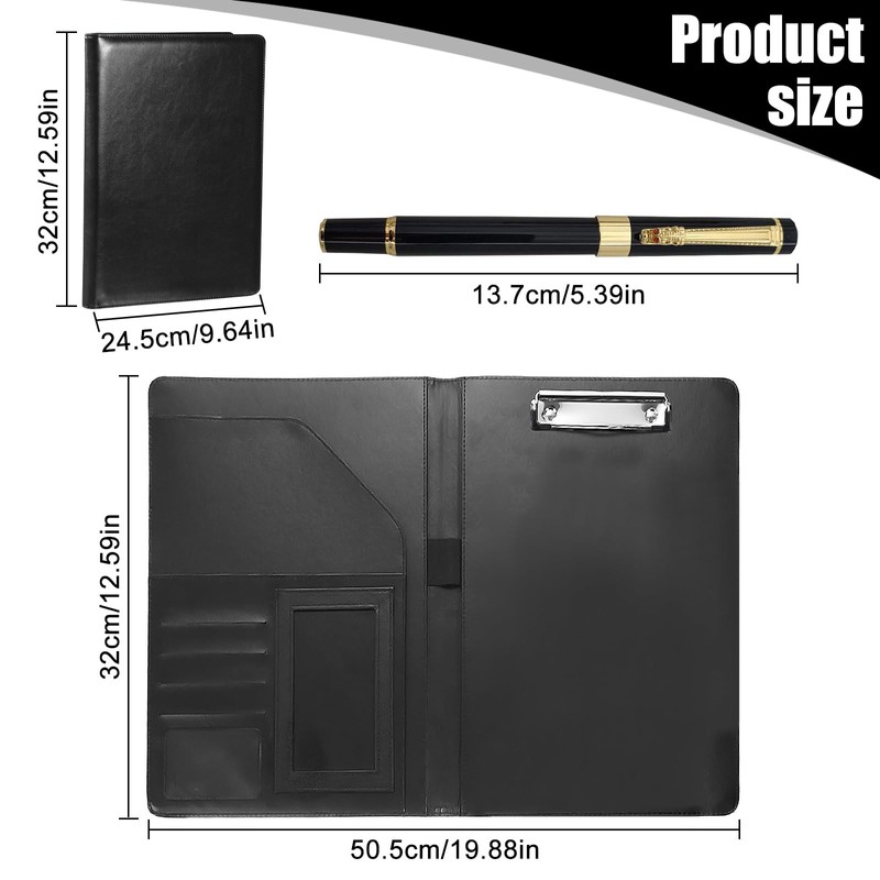 Our comprehensive package includes a sleek black meeting folder and a coordinating black pen, ensuring you're always prepared and looking sharp. Universally compatible with A4-sized documents, these folders are ideal for both work and school environments, as well as meetings and presentations.