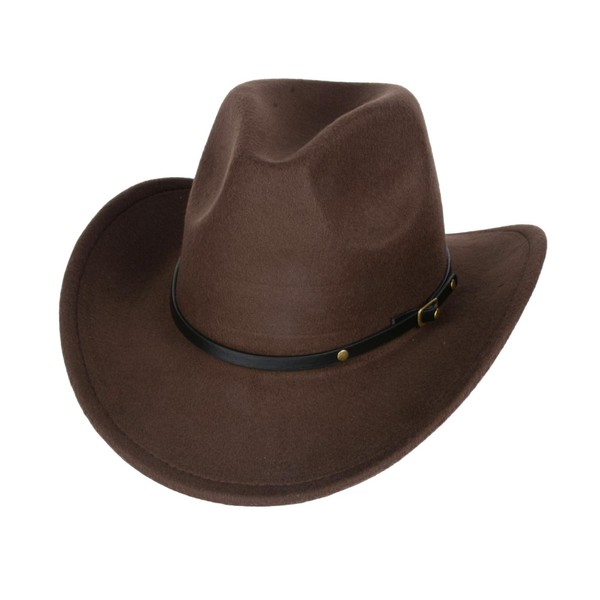 CZCMYAU Cowboy Hat for Men Women Western Felt Fedora Hats with Ribbon Cowgirl Hat Wide Brim with Belt for Outdoor Brown