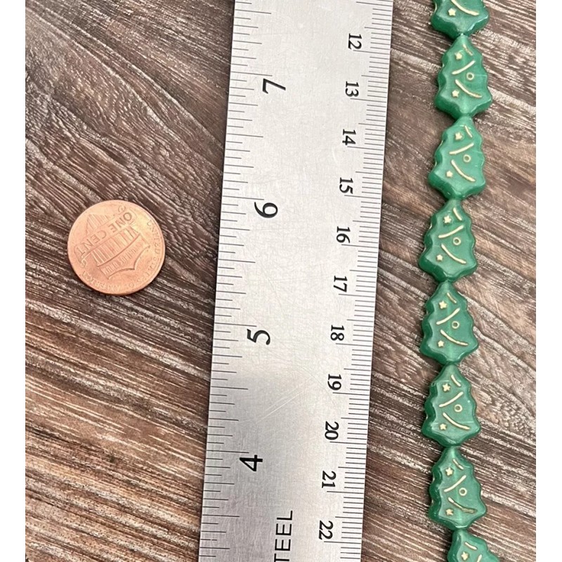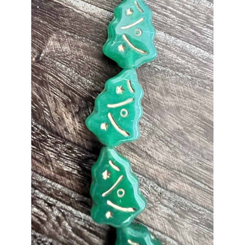 Czech Christmas Trees Beads Czech Glass Opaque Green - Gold Inlay 17x12mm Set Of 25