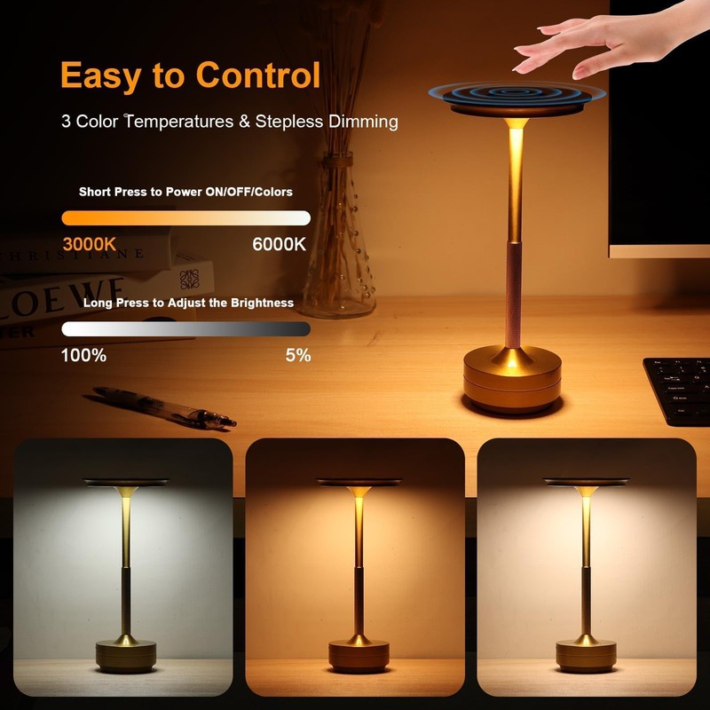 - Cordless Desk Lamp: The rechargeable table lamps have a luxurious l appearance and portable design that make it a highlight of room’s decor, combining functionality with aesthetic appeal. Place it in a corner to give off a warm, inviting glow, or use it as a desk lamp or bedside lamp for a cozy atmosphere.