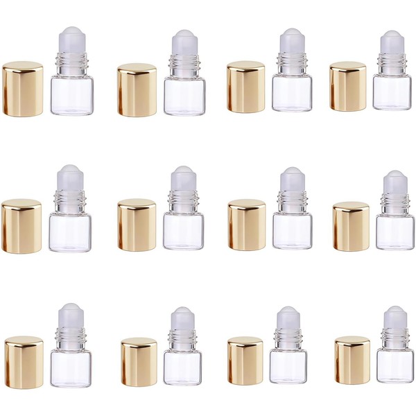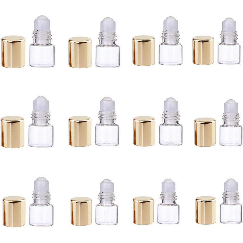 - PACKAGE CONTENTS: Set includes 12 premium gold-colored glass roller bottles, each with 1ml capacity for essential oils and aromatherapy samples