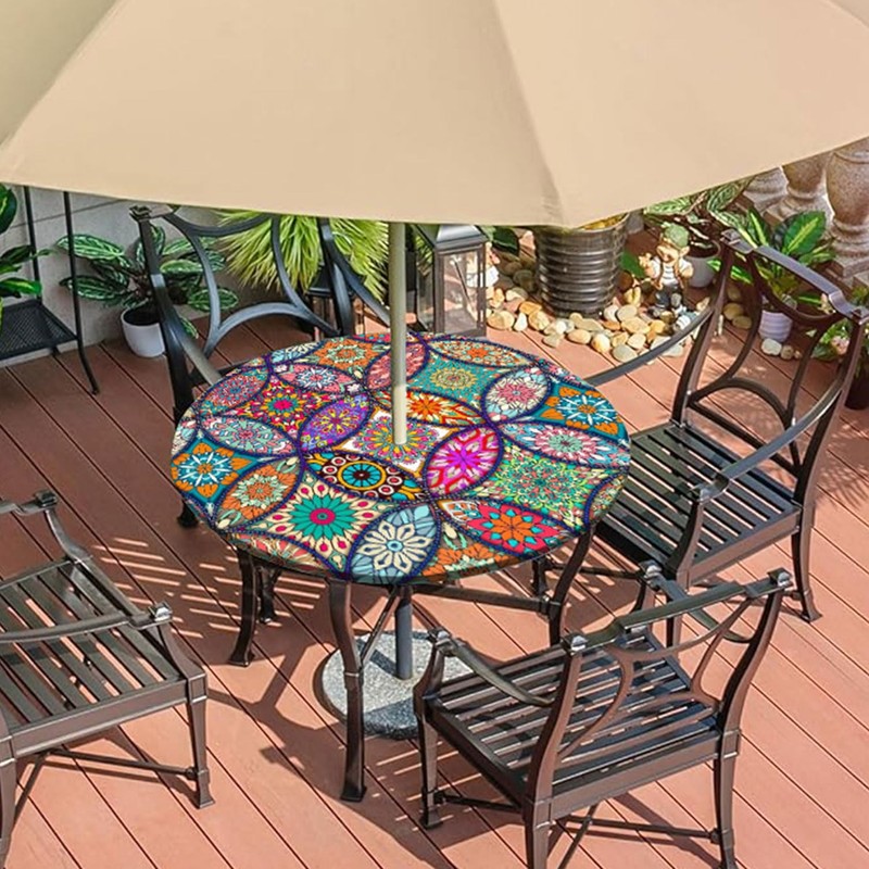 - Wide Range of Application: Our outdoor table cloth with umbrella hole with personalized pattern, meets both practicality and home decoration, and it can be a house-warming & holiday gifts for friends,suitable for camping, picnics, barbecues, family gatherings, themed parties, and any outdoor activities,and suitable for all kinds of indoor or outdoor activities.