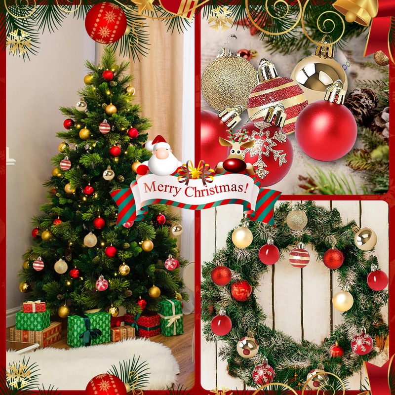 - 9 eye-catching designs: red and gold classic colour combination bring a traditional but pulent look. 9 matte, shiny and glittering designs plastic decor balls adds colour, sparkle, flair and visual appeal to your Christmas tree.