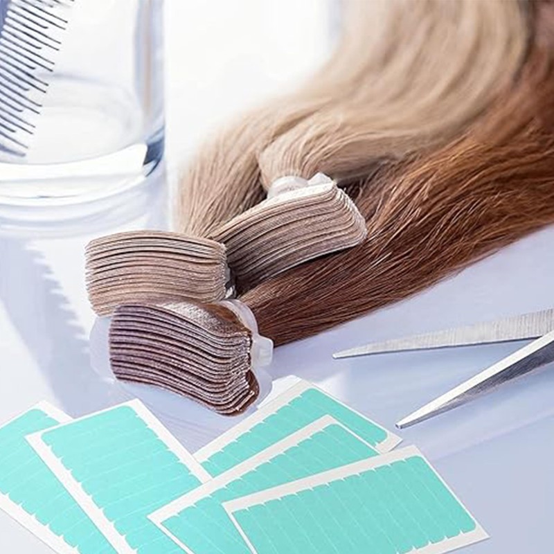 - Sticks very well, workmanship is neat. Each hair extension tape has a pre-cut in the middle, which is convenient to peel and stick, and good for hair extension.