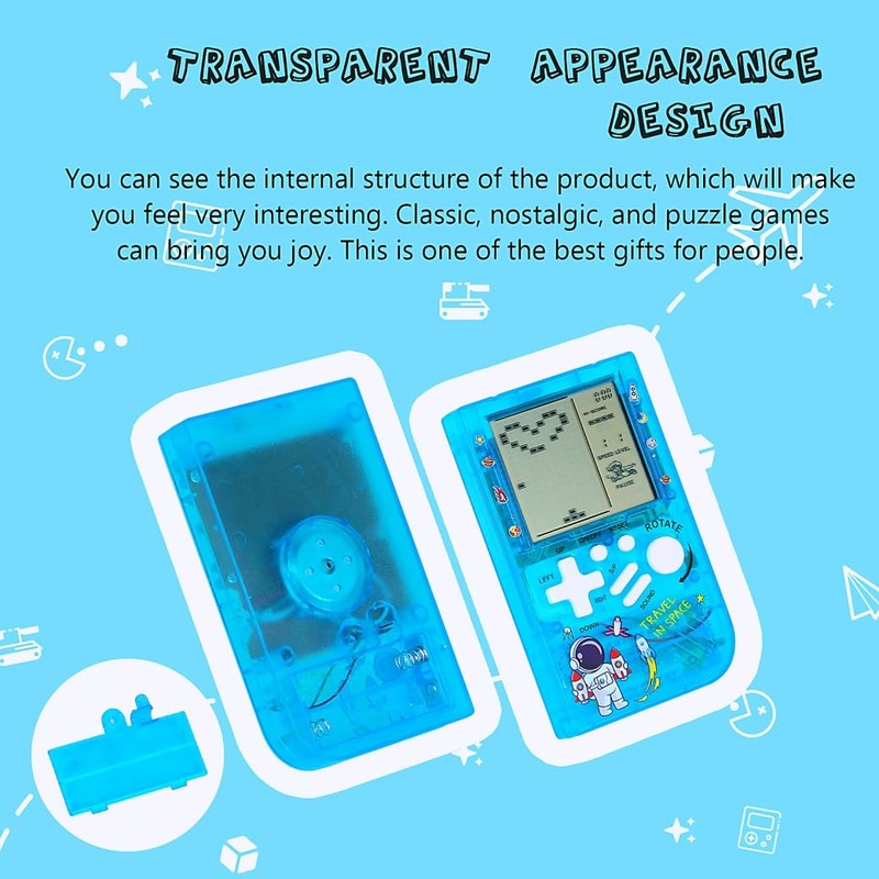 CZT Creative Transparent Brick Machine Retro Game Console Handheld Game Console Interesting Puzzle Games Anytime Anywhere Play Children's Gifts Student Gifts Pocket Game Console (Blue)