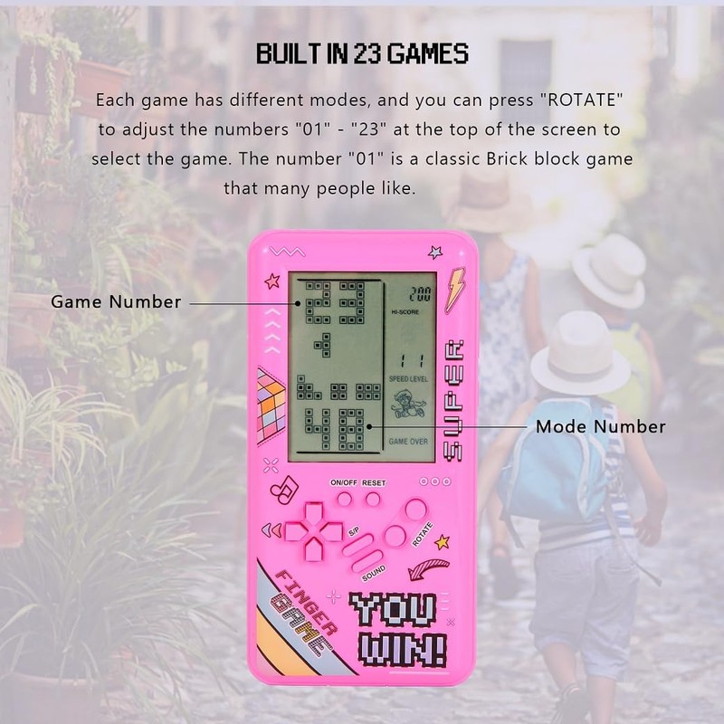 - 1. EASY TO START The Brick game console is simple and intuitive, and players just need to move and rotate the blocks left and right to create a complete line. Even new players can get started quickly. Other games also have similar operations.