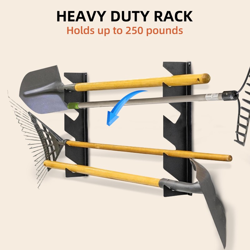 - 250 lbs Heavy-Duty Steel Rack-Heavy-duty alloy steel frame + rust-resistant powder-coated finish withstands harsh environments. Holds 4 axes or 3 snow shovels simultaneously—zero sagging guaranteed