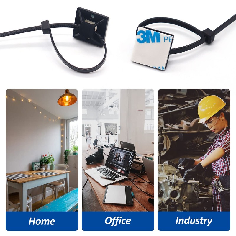 - Widely Used: This zip tie mount base can be used indoors or outdoors. Such as, indoors, our Wire Tie Holder works really well for guiding cords along the undersides of desks and tables, and can also be used along walls or other flat Surface .you can use it to hide cables and power cables to make your desktops tidy. Outdoors, you can use these Cable Tie mounts to secure the LED strips and some messy wiring.