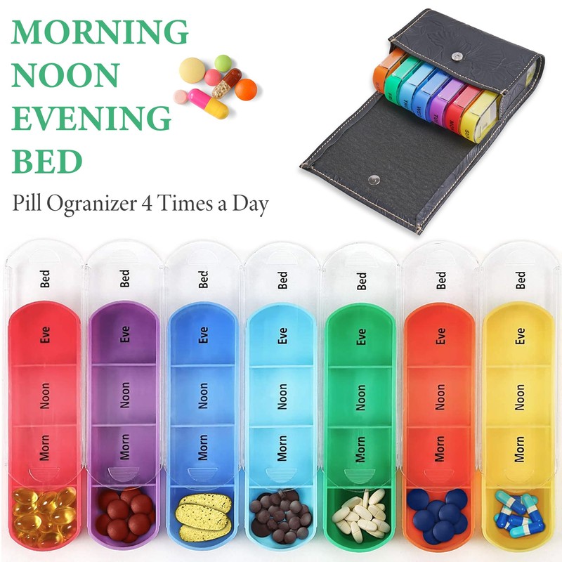 Remember, taking your medication every day is difficult and overwhelming. The Haecsfl pill organizer comes with seven containers divided into four sections for morning, noon, evening and bedtime.