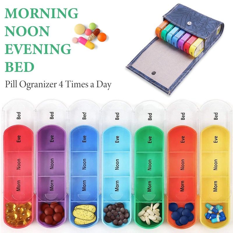 Remember, taking your medication every day is difficult and overwhelming. The Haecsfl pill organizer comes with seven containers divided into four sections for morning, noon, evening and bedtime.
