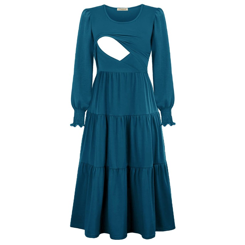 CzzzyL Women Nursing Dresses for Breastfeeding Scoop Neck Casual Put Up Outfit Slight Feminine Loose Fall Tiered Dress(PurplishBlue,X-Large)