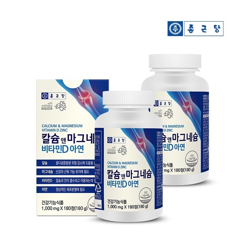 종근당 칼슘 앤 마그네슘 비타민D 아연 (1,000mgx180정) 2박스(총6개월분), 단일상품