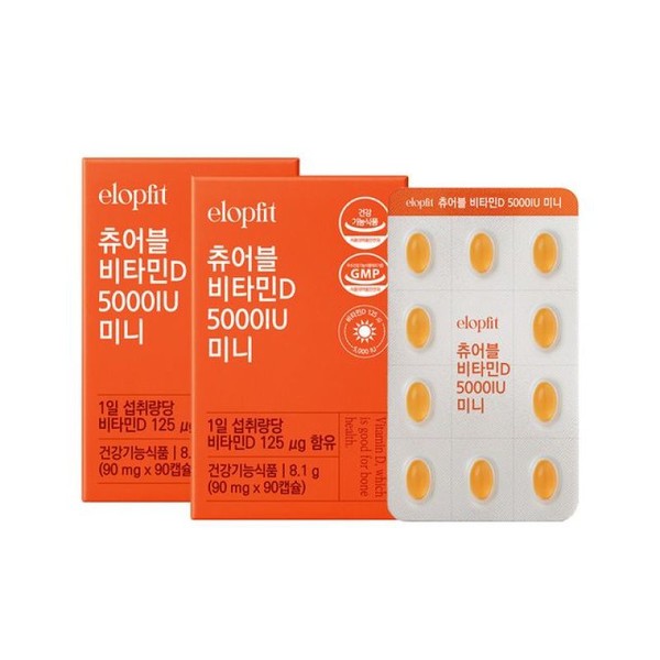 이롭핏 츄어블 비타민D 5000IU 미니 90캡슐 X 2박스 (6개월분)