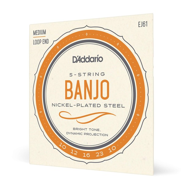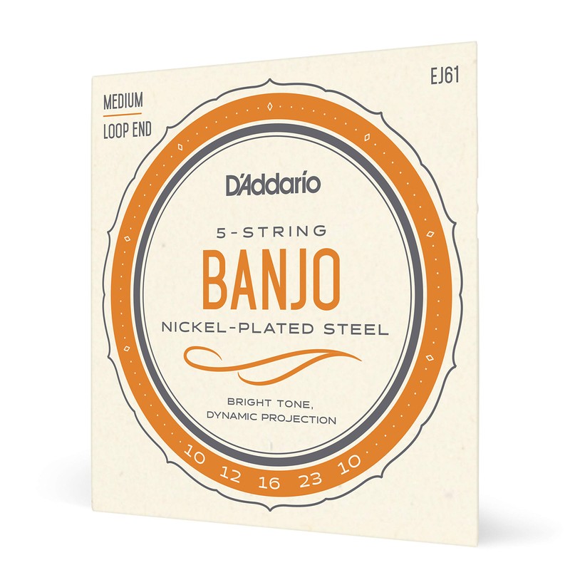 D'Addario Banjo Strings, Nickel-Plated Steel, EJ61, Medium Gauge 10-23, 5-String Set, Pack of 1